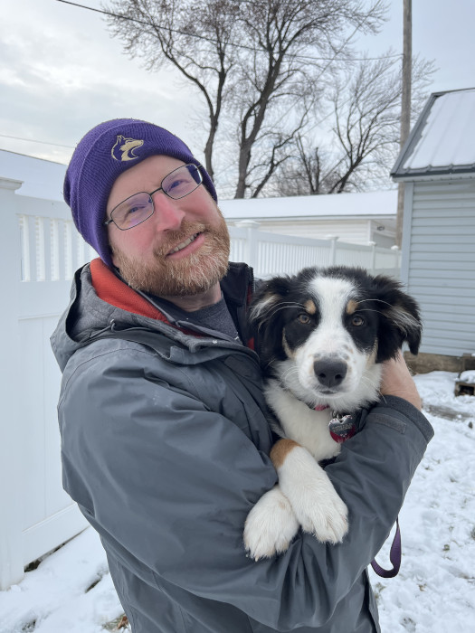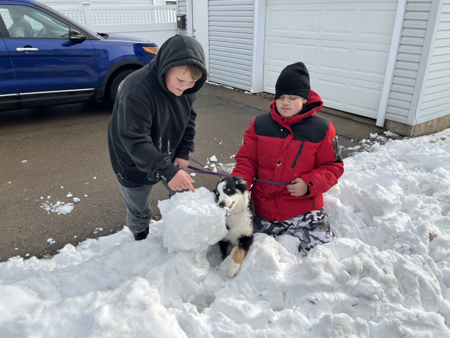 I was enjoying another day of freedom from school, Mom was finishing baking and packing up treats, and Dad took the day off to help out and get some other things done around the house. And then we had some guests. Nick and Jessica brought over their pups for a visit! And Jonathan, Caroline, and Ned came by so Jonathan and I could exchange gifts.
