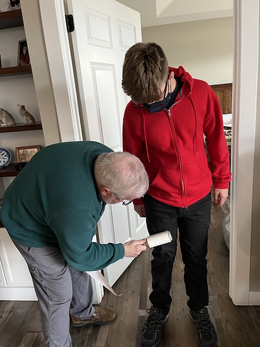 Grandpa had to clean up some of Loki's fur, which got all over me, as it always does.