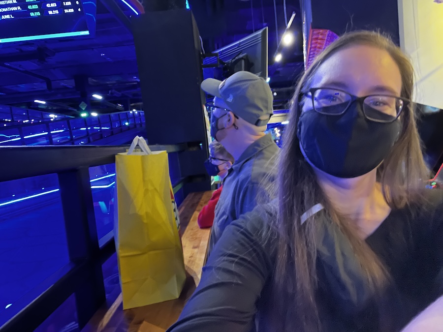 From Grandma and Grandpa's we went up to the mall. We went to the LEGO store and built some boxes from the pick-a-brick wall, found a Wolf Warrior in the bin of minifigs, and I got a couple of sets - Ahsoka's interceptor and the midi-scale Acclimator. We also walked around, looking at other stuff, like the arcades. And we got some donuts at Dunkin'. We were too busy having fun to to take pictures, except for one at the go cart track.