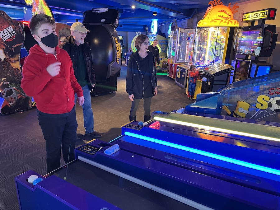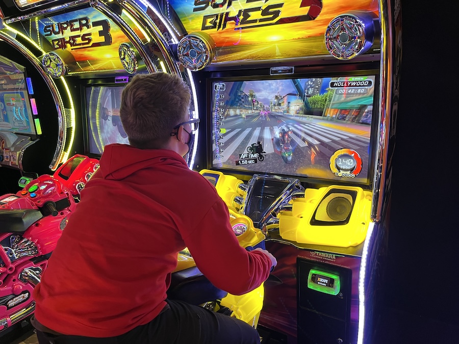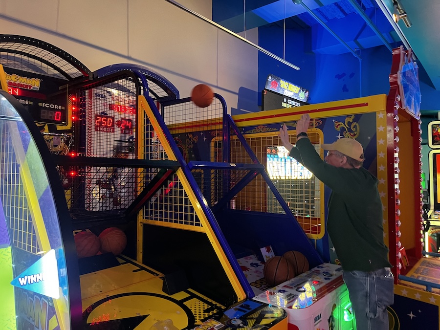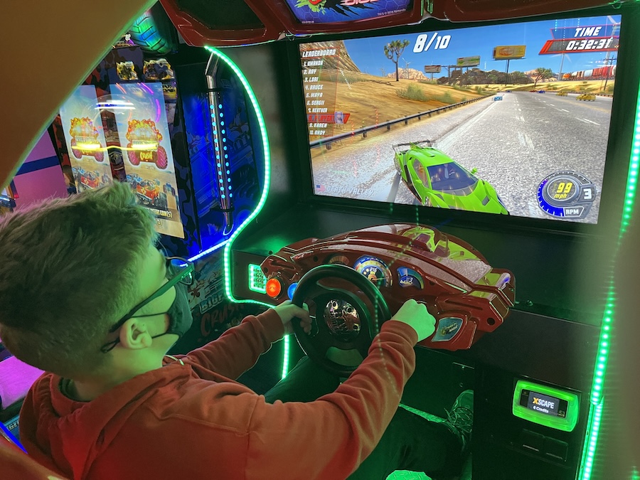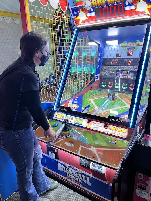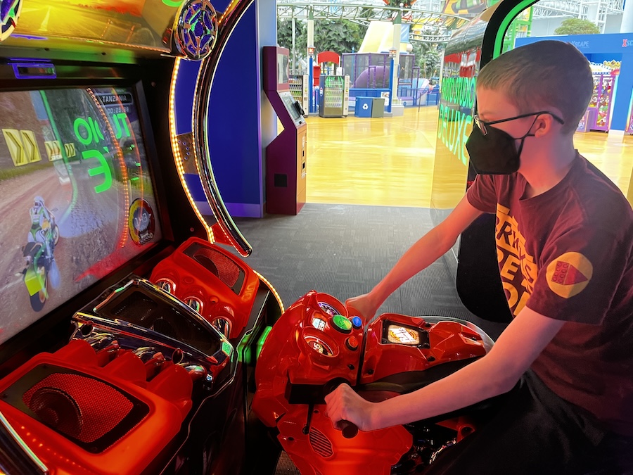 Jonathan was not a fan of the roller coaster, and he was okay to wait while I went on a different ride - the skateboard. But, I forgot to take off my glasses...and they flew off at the top of the ride! We tried to figure out where they might have landed, but no luck. The ride operator called the maintenance crew and they found the glasses much farther away than any of us thought they would be. And they weren't even damaged! That was almost a very expensive mistake.