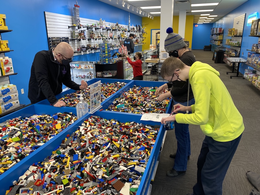 We didn't get a picture, but I did buy a big pile of minifigs at the second BAM - most of them were vikings, and almost all of them had Anglo-Saxon helmets. And then we had some lunch and went to the third shop of the day. Rob, the owner of two stores, was working, so we got to visit with him...and get a look around the expanded back room of the store, where I found some good stuff.