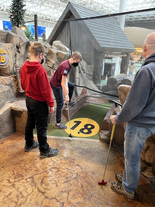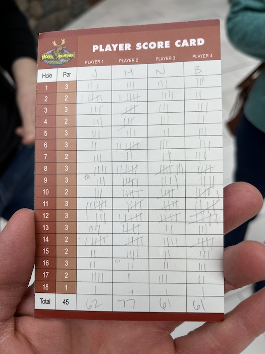 The boys played mini golf. Eighteen holes! Lucky you, Dad only remembered to take a picture of the last one, or you'd be scrolling all day.