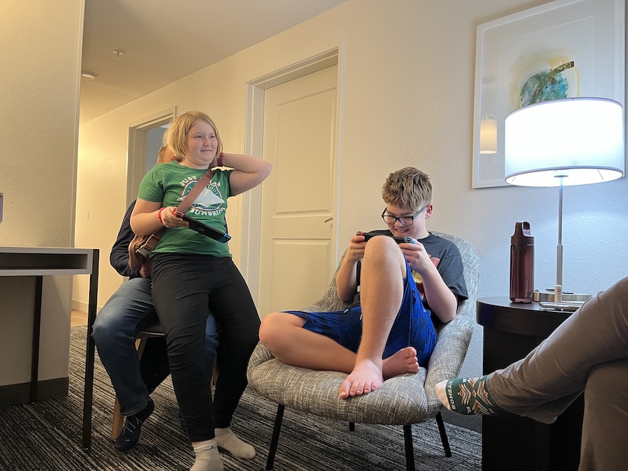 Friday was supposed to be another day of fun, but we had to change those plans. Mom was feeling sick when she woke up, and I was feeling ready to go home, so Freya and I did not go swimming. We went down for second breakfast, but Freya burned her finger on the waffle iron when she tried to get her waffle out, and we all agreed that it was maybe time to head home. So we did.