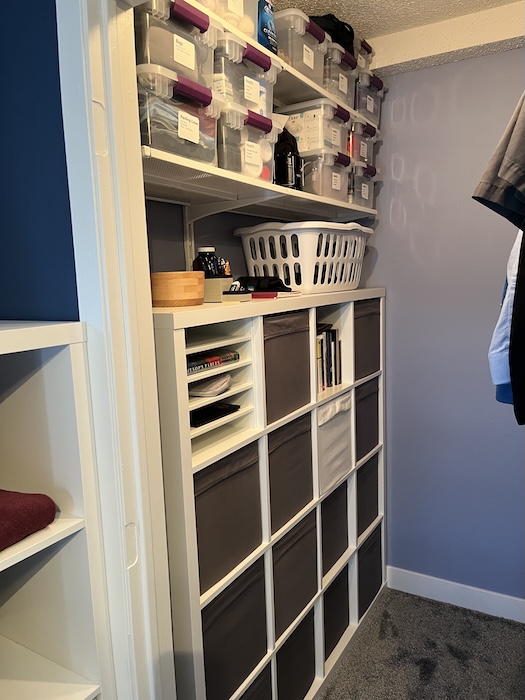 One of the new shelves in the closet. Still waiting on some drawer inserts.
