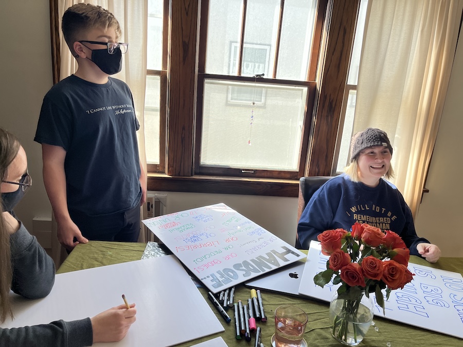 Saturday morning we drove up to Freya's house. What was going to be just a visit with Zelda, the new puppy, turned into a full weekend. We decided to go to the Hands Off protest at the capitol.