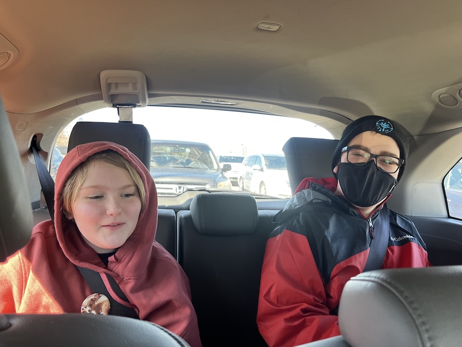 On Monday we went to Great-Grandma Joan's funeral. We got up early and drove for a few hours to get there. I talked to Jacob and Tanner for a little bit, and I talked to Ross about history. Once Freya and Kara arrived, I hung out with Freya. We watched the ceremony from the family room, where it was quieter. I'm not a fan of loud organ music or group singing. Mom and Dad talked to people and sat in the service. After the food, we went out to the cemetery, where it was windy, just like every time we have been out there (although not as cold as Great-grandpa Eldon's funeral). We only got a couple of pictures because Mom and Dad were too busy talking.