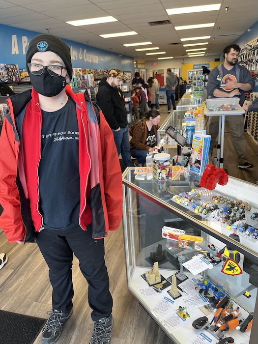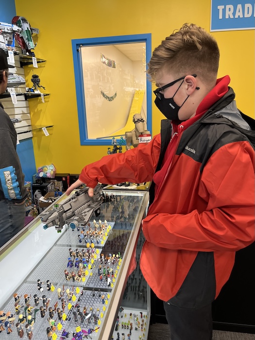 Since we were passing by the LEGO Store on the way to the hotel, Dad thought we should check the Pick-a-Brick Wall...and it was a good thing we did! The wall had two kinds of masonry bricks, a lot of foliage we had not seen before, and other interesting pieces that were new to us. Normally we spend a couple of hours packing a box or two, but since we had less than 30 minutes we worked fast and managed to fill five boxes before closing. Whew! That was fun.