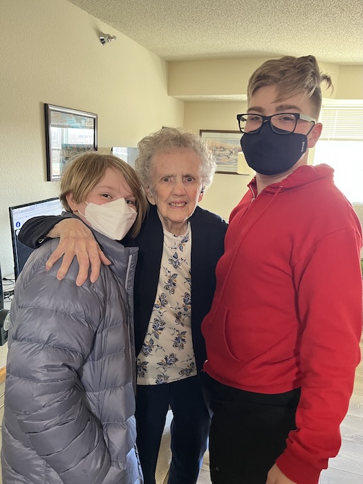 Sunday morning we went to Freya's to play with Zelda, and around lunchtime we left to go see Great-grandma Muriel. Freya rode with us, and Kara met us there after she was done with church.