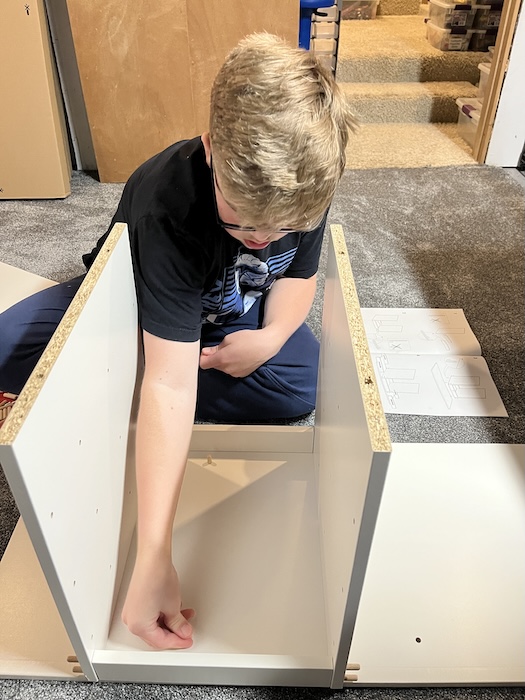 Monday night Dad and I built some shelves together while Mom was cutting and folding and taping dozens and dozens of boxes.