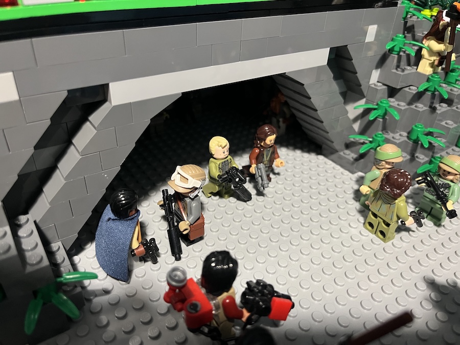 Cassian and Luthen leaving the bunker. Jyn Erso is talking to Lando.