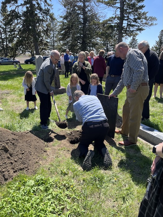 There was a short service at the cemetery, and then Gary and Bruce took care of placing the ashes in the ground and covering them with earth.