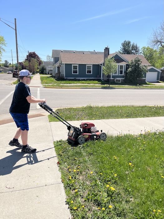 Mowing the lawn.