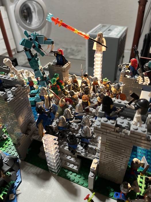 The sun coming through the basement window lit up my Middle Earth battle.