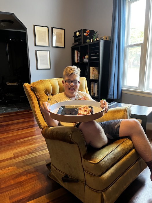 This week the air quality was terrible, so aside from a trip to the pool, we stayed home. I spent most of my days in the basement working on various LEGO projects, including making several iterations of a building for my medieval town. Mom worked on finishing up my curriculum for the coming year, and Dad was at the library working.