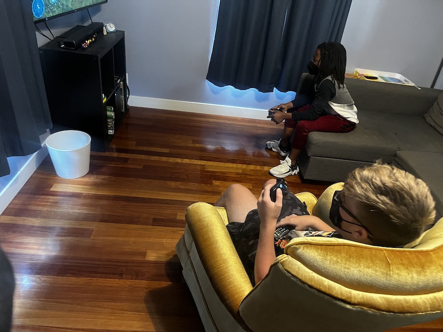 Playing video games with Anthony.