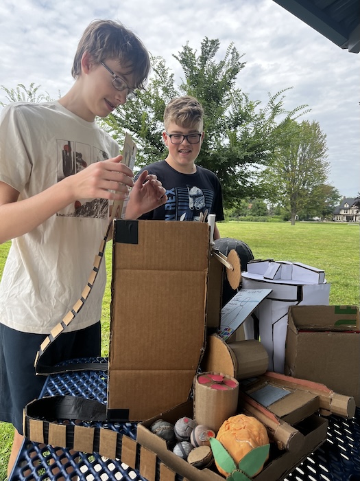 At Recess with Jonathan - showing me some new stuff he made.