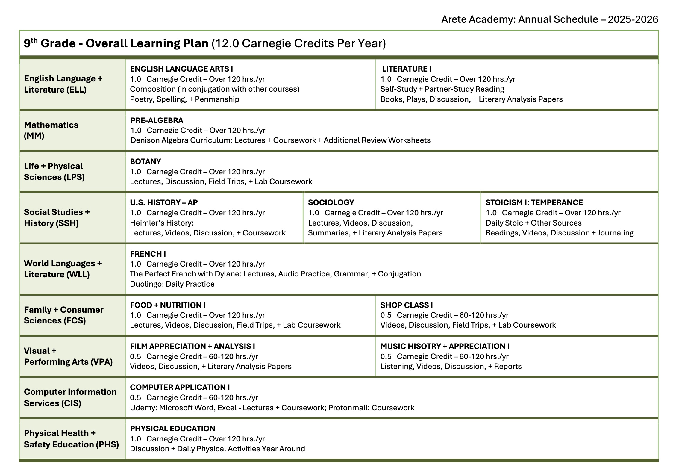 I am doing a lot for school this year. Mom planned everything: she created fourteen syllabi and scheduled every day of the year to be sure we can get it all done. If you're curious, this is the one-page summary of what I will be learning.