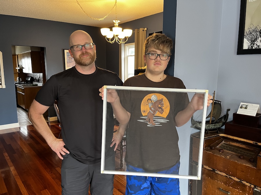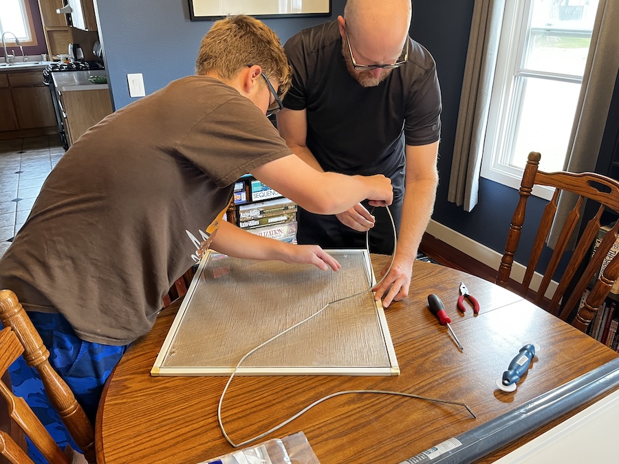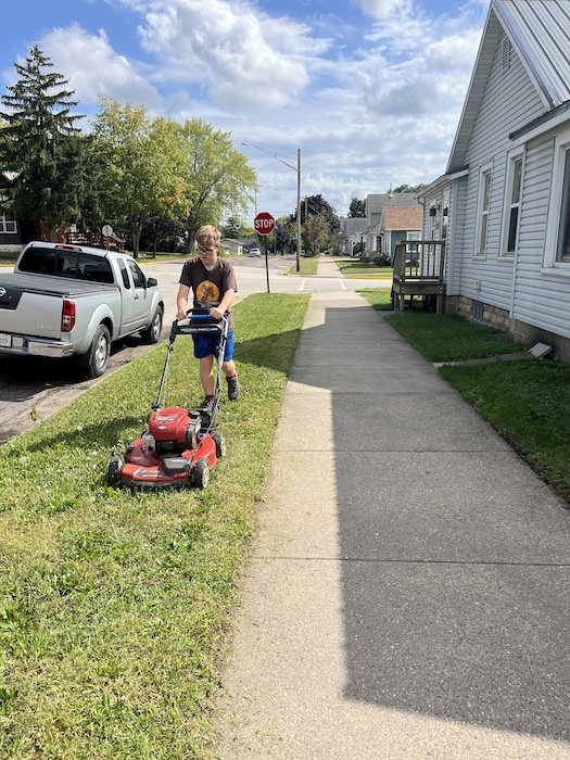 Sunday was kind of a work day. Dad and I went on a bike ride, then we fixed a screen, I mowed the lawn, learned how to use the air compressor, and then I helped make supper.