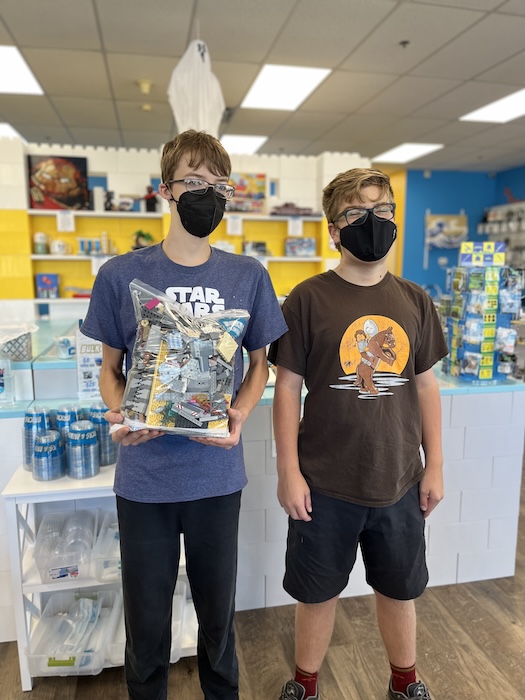 We had some other things to do in town, along with taking Lily home. I went to see the orthodontist, we went to the flag store, and we met Jonathan at BAM to fill the bag of free LEGO. Only three more of those to go. After filling the bag we went to a park for a picnic and then to Coldstone for some ice cream.