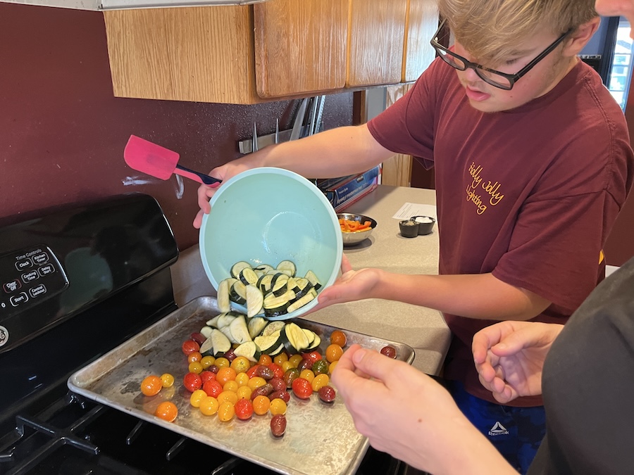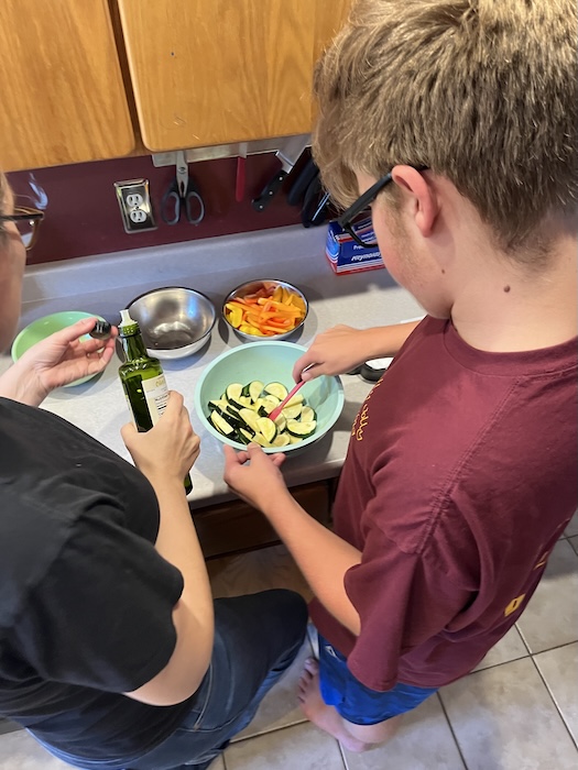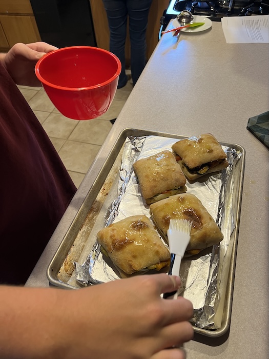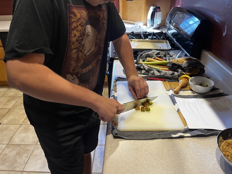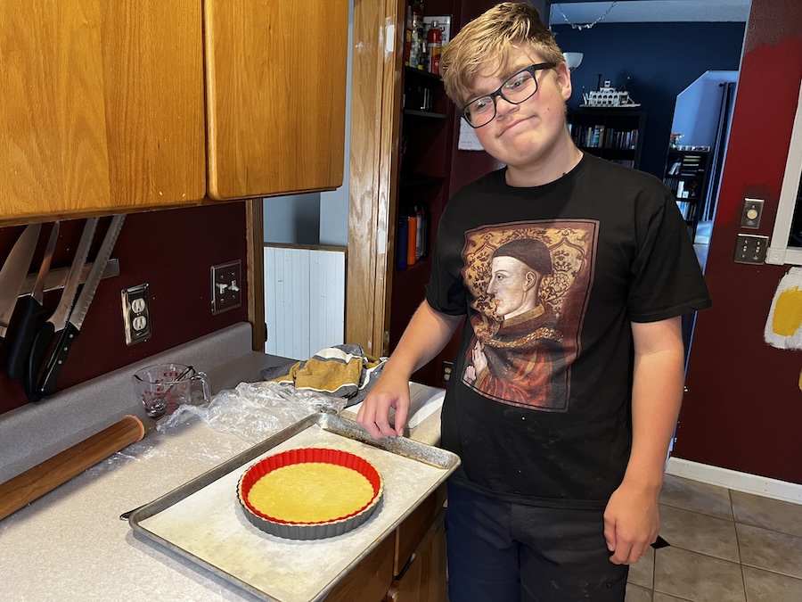 Sunday morning Dad and I went on a bike ride, then we worked on my paper about the Henry V movie. I continued to work on my paper while Dad mowed and cleaned up the car. Mom worked on getting school ready for the next couple of weeks. Then it was time for another food lab.