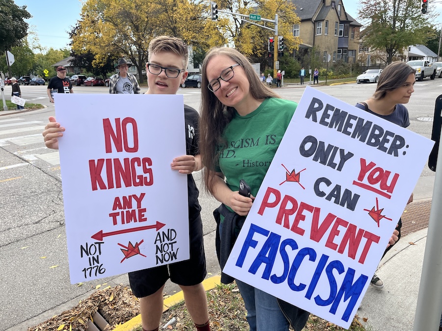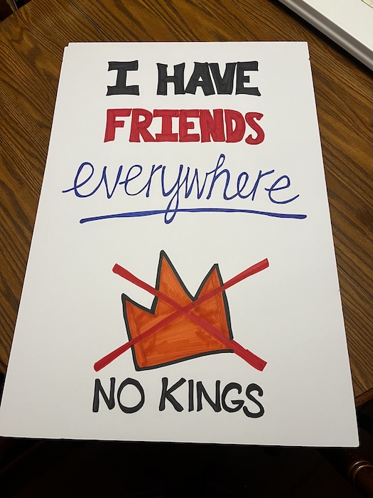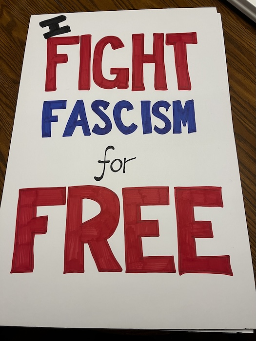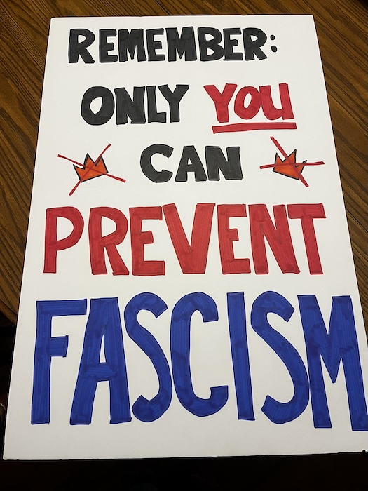 Our signs in action - Mom's "Worst Sequel Ever" was the most popular - lots of people wanted pictures of it.