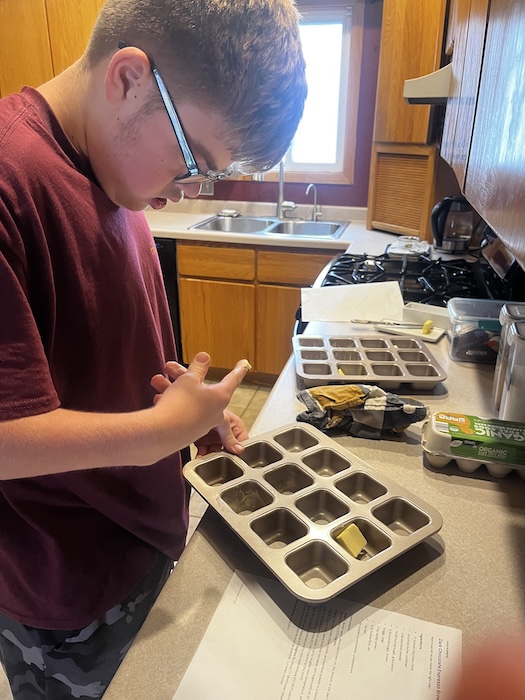 Buttering the pans