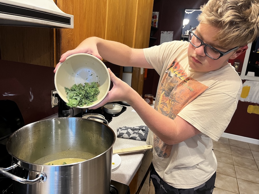 Adding some kale.