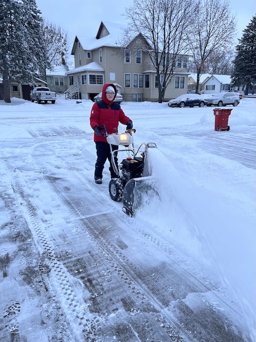 Moving snow.