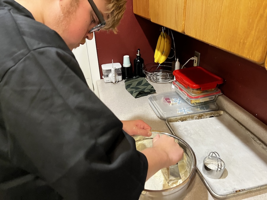 Making biscuit dough.