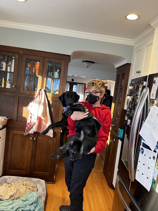 Saturday morning we left early in the sub-zero temperature and drove to Freya's house. Once we were there we played with Zelda, exchanged some Christmas presents, and handed over some of the things Mom made (pictured earlier).