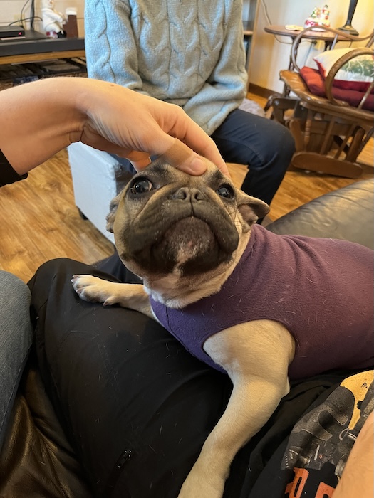Sunday morning it was even colder than Saturday, and after having some waffles at the hotel, we headed over to see Nancy and Dave, and to meet some new pugs. Nancy also let me open my Christmas present from her early, but Dad was too slow and didn't get a picture. I got a book on pirates and one on the Plantagenet dynasty by Dan Jones (who wrote the book on Henry V I read earlier this year).