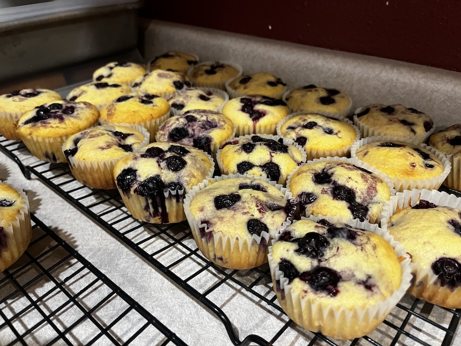 As if Mom was not baking enough already, she made blueberry muffins in the morning, as well as more pizza dough.