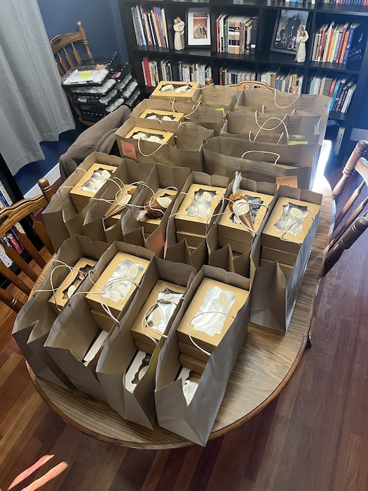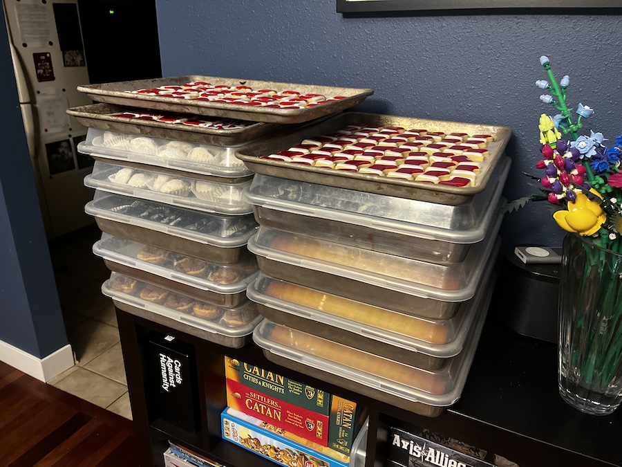 In the morning, it was time to pack up the treats for delivery! Mom and Dad did that, I was playing with LEGO.