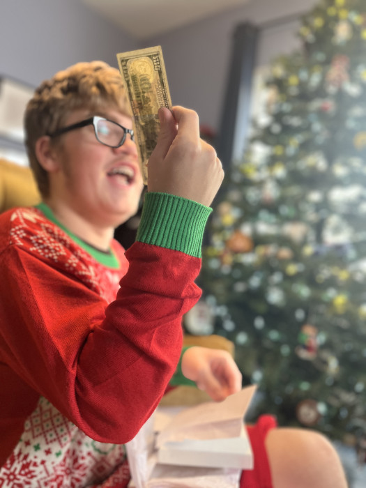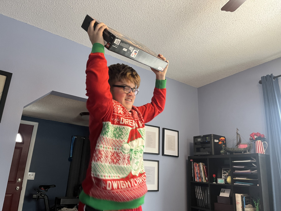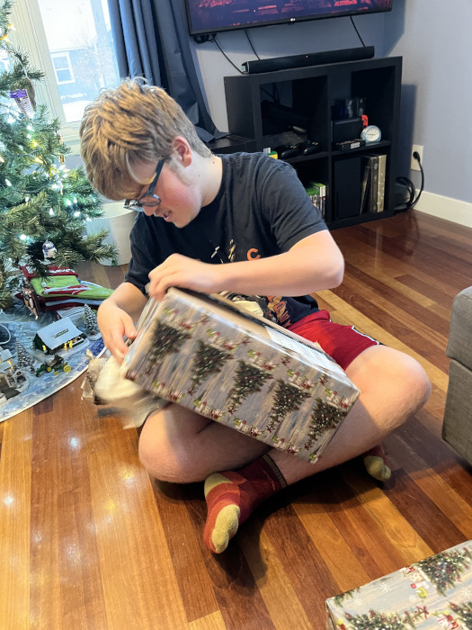 Trying to recreate some of my boundless youthful exuberance while opening presents.