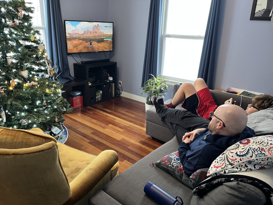 After the presents, Mom had a rest day before she had to do some more baking. Dad and I played my new video game for a few hours, and we all watched A Muppet Christmas Carol.