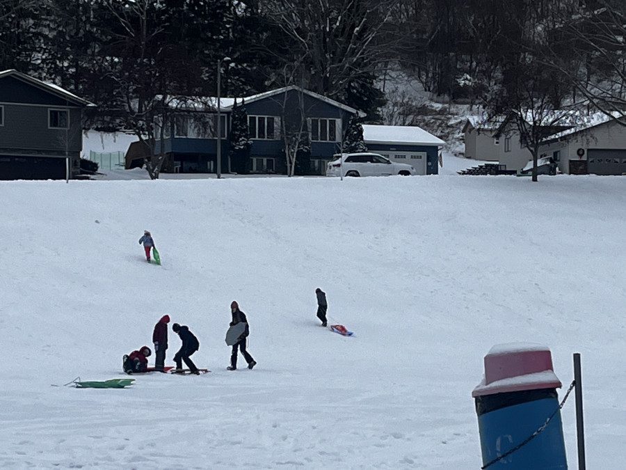 On Tuesday after school was done I went sledding with my friends. It was me, Jonathan, Kellan, Annika, Billy, and Bingham.