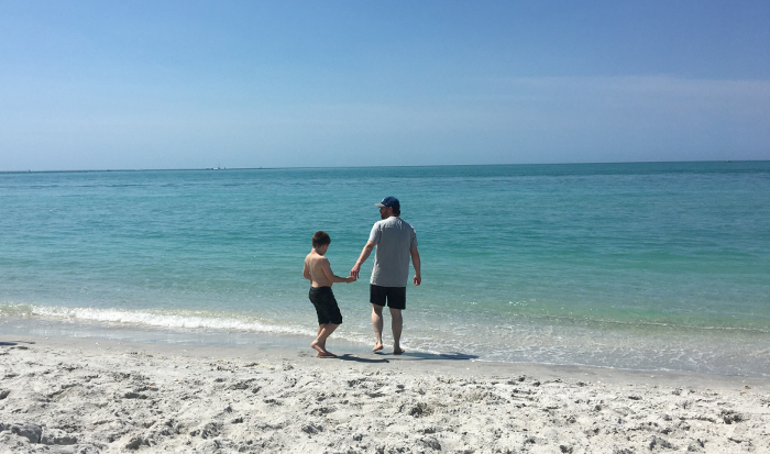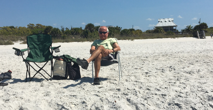 On Friday we were supposed to be going to see the Twins play the Pirates at Lecom Field in Bradenton...but since Spring Training was canceled, we went to the beach with Bob. We drove over to the Gulf and spent a little time on the sand and in the water. Enough time to get a little sunburn and to learn I don't like hot sand or walking on seashells. But I do like the water and the waves. And that's about all I have to say, so here are the pictures: