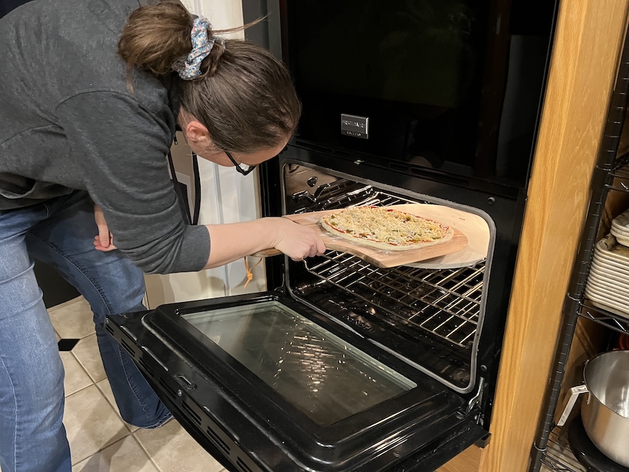 Mom got a pizza stone and peel, so we made pizza this week. Twice actually, because it was so good!