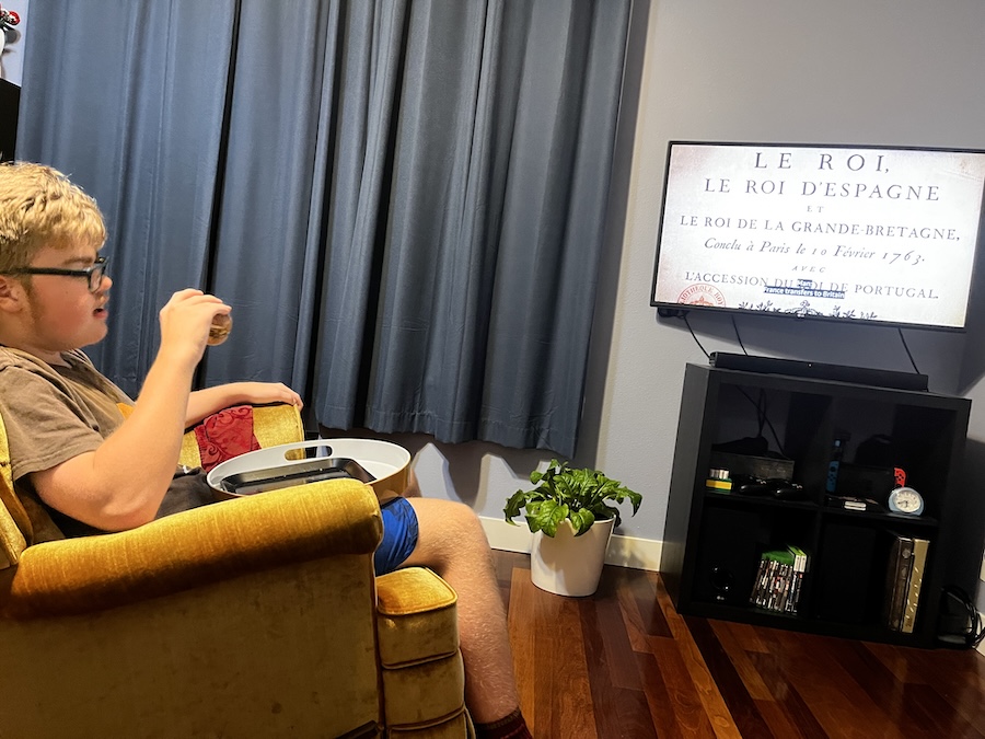 For viewing, we watched the documentary Trekkies, about Star Trek fans, and the fictional film Fanboys, about some crazy Star Wars fans. We also watched Anthony Bourdain in Paris and Andrew Zimmern in Spain for food class. For fun, we watched a History Hit documentary on the Battle of Shrewsbury with Michael Livingston and Dan Jones (who wrote the biography of Henry V that I just read), and for history class we started watching The American Revolution by Ken Burns, as mentioned already. It's really good, and we have already seen several places we went to on our trip two years ago. We also managed to get in a few episodes of Big Bang Theory and Battlestar Galactica, as well.