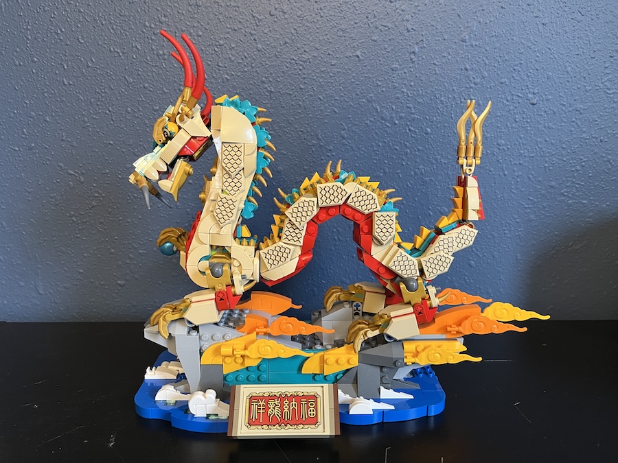 Dad and I worked on LEGO projects. He sorted out all 3,304 pieces of the Medieval Town Square LEGO set for me, so I could build a different set of buildings than the official instructions. And Dad finished building the Auspicious Dragon he started yesterday (which was his birthday present last year).
