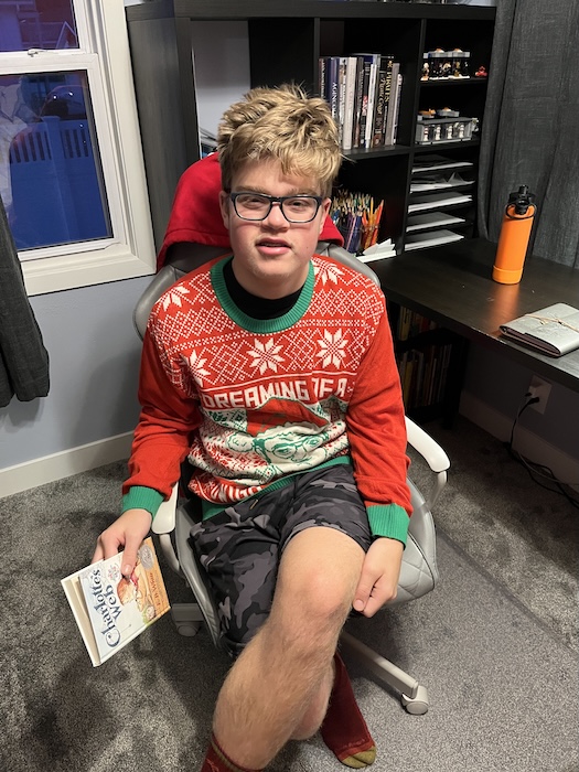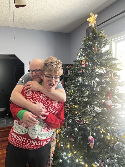 Christmas tree day! I've got my Dwight Christmas sweater on.