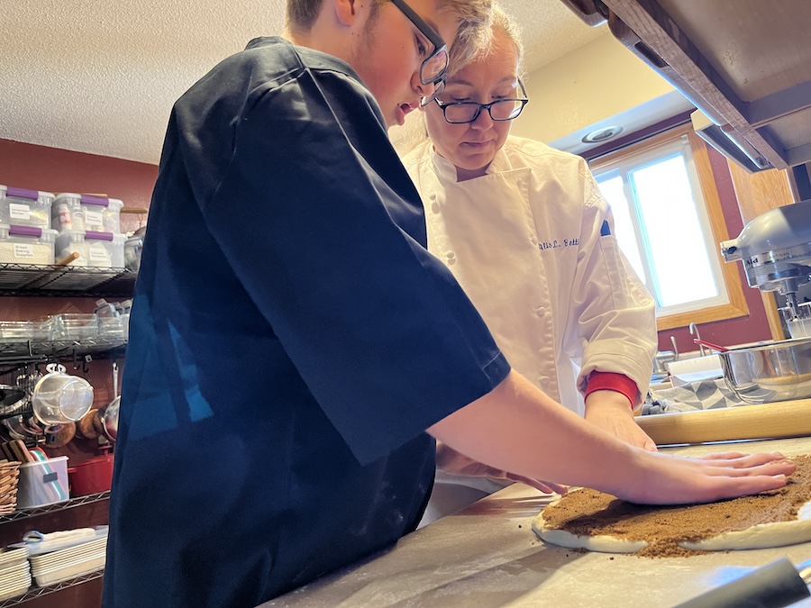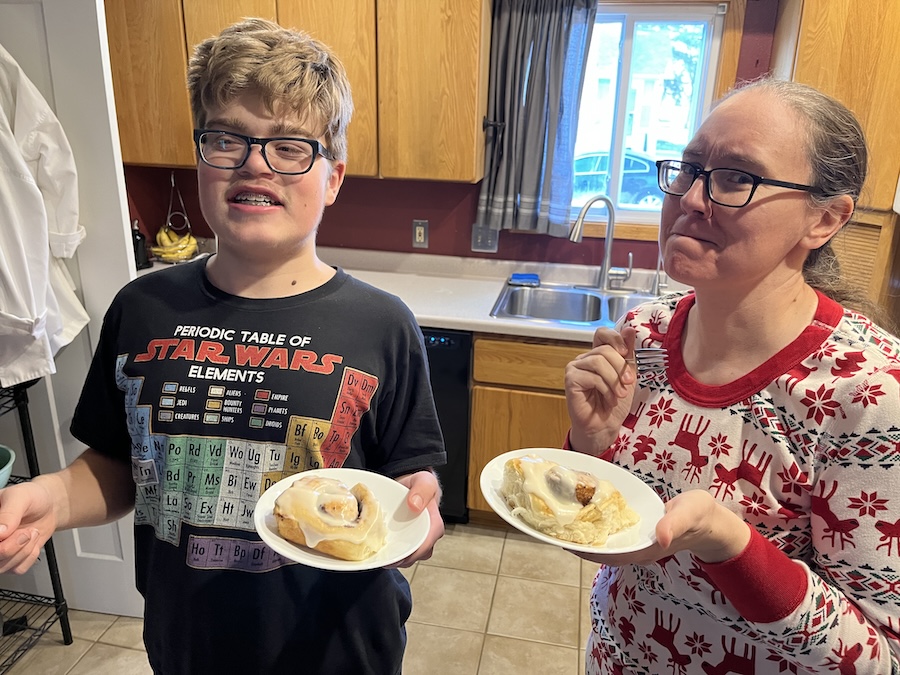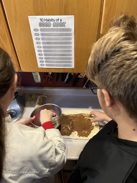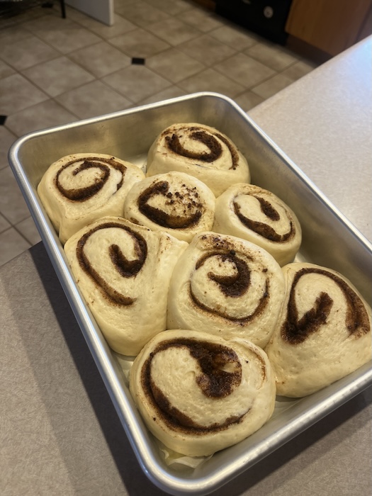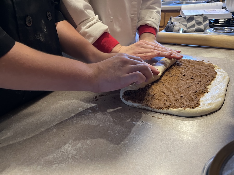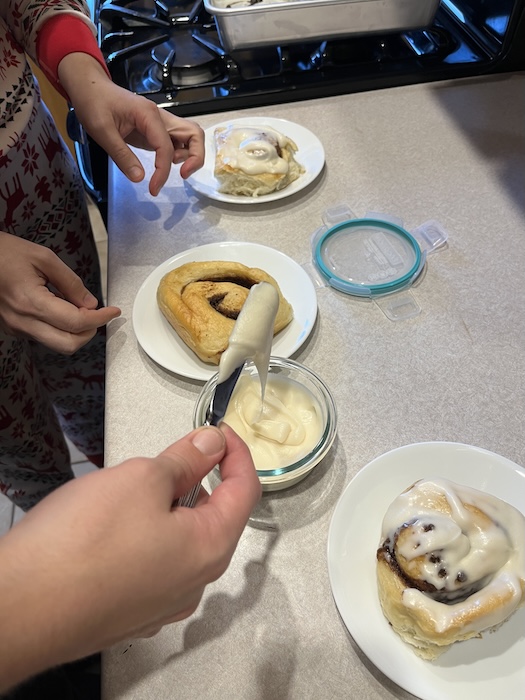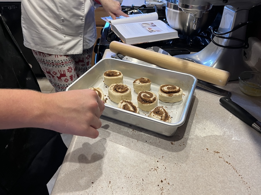 Before we decorated the tree, we had to get the cinnamon rolls formed.