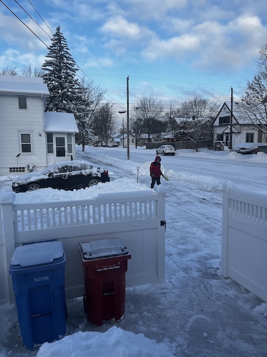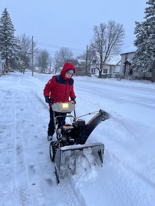 We had about 4-6 inches of the white stuff, so Dad and I went out to clear it once it got light out. We did our sidewalk and driveway, and two of the neighbors. While we were out, Mom made lemon blueberry muffins.