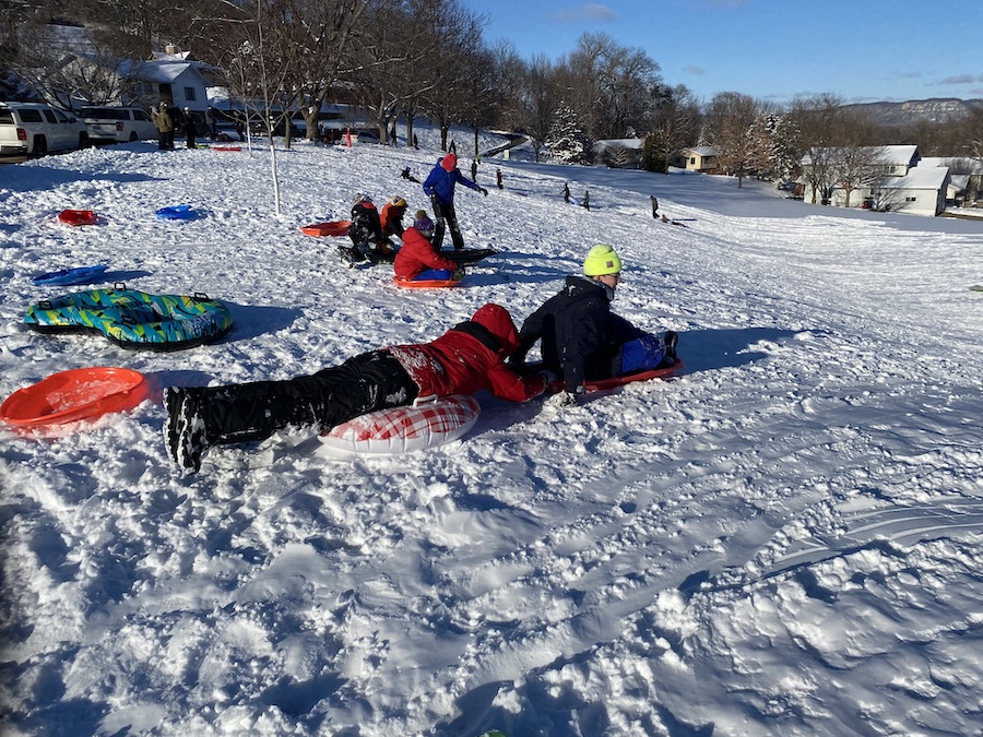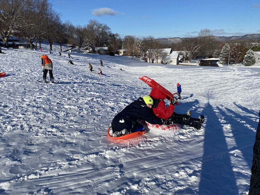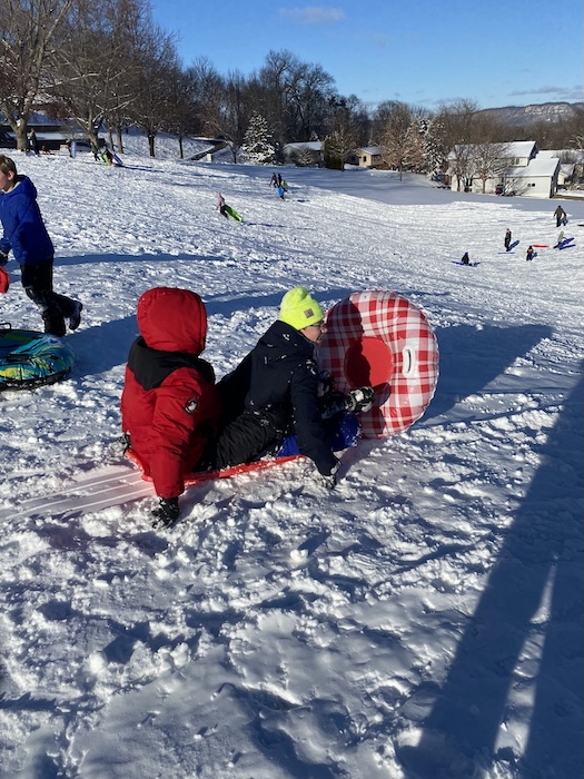 After lunch we went sledding with Jonathan. Anthony and his sister Asiana met us there, since our chosen hill is a few blocks from their house.