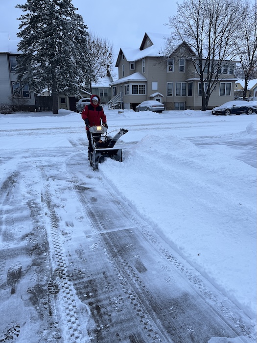 Moving snow.