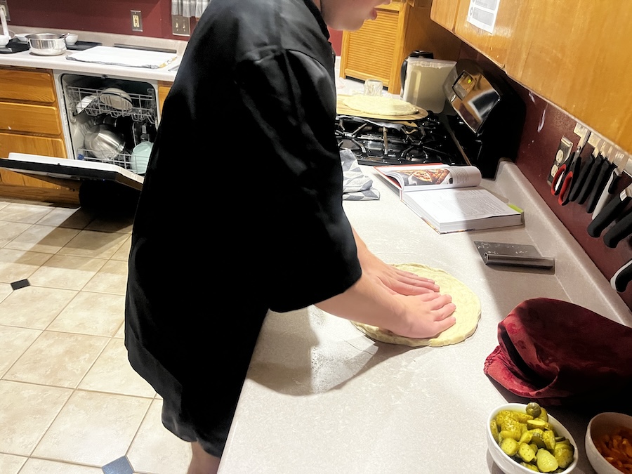 Kneading the dough.