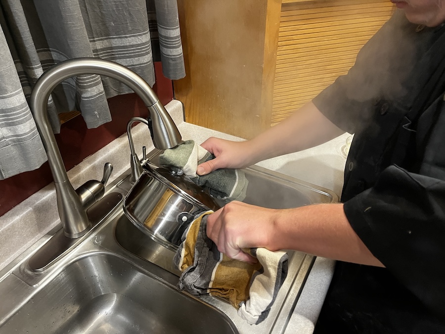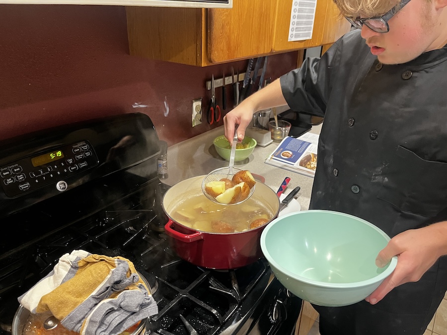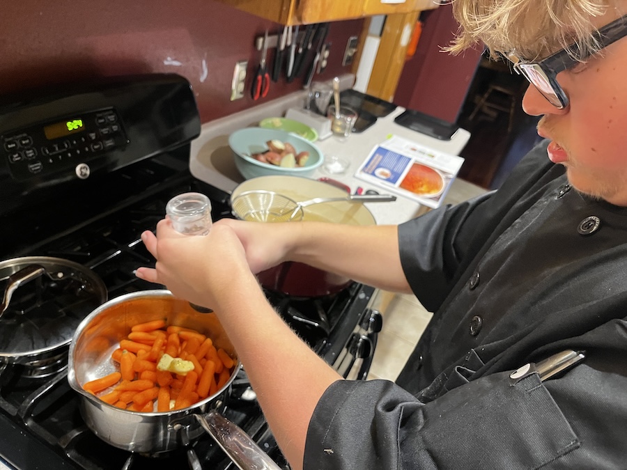 Draining the carrots.