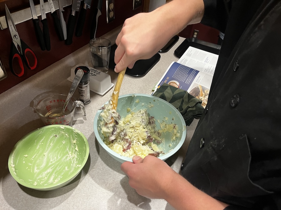 Making biscuit dough.