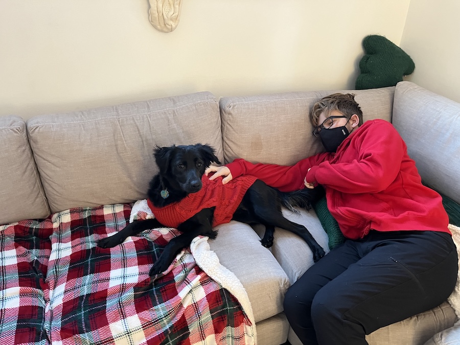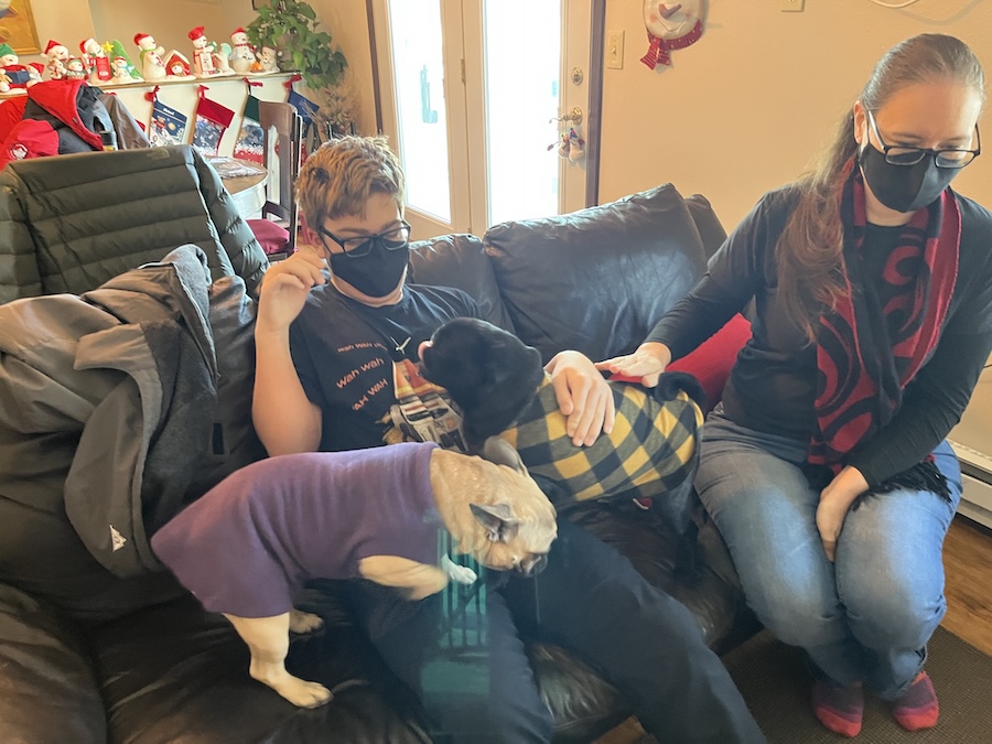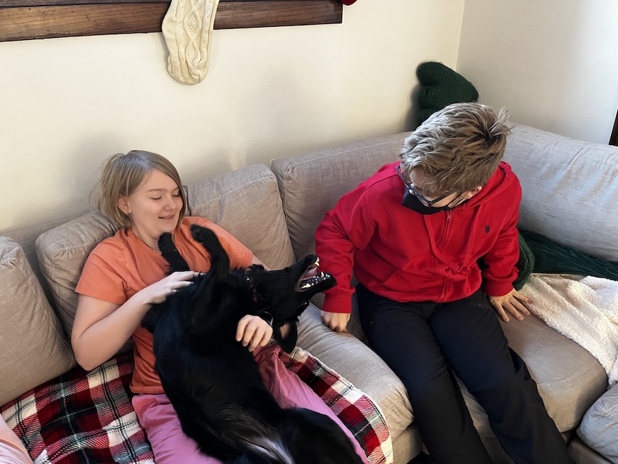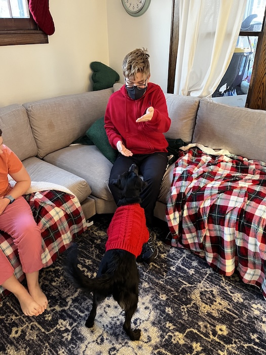 Saturday morning we left early in the sub-zero temperature and drove to Freya's house. Once we were there we played with Zelda, exchanged some Christmas presents, and handed over some of the things Mom made (pictured earlier).