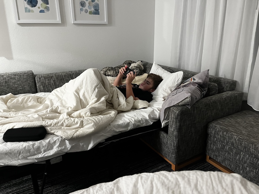 Playing my Switch while waiting for breakfast to open.